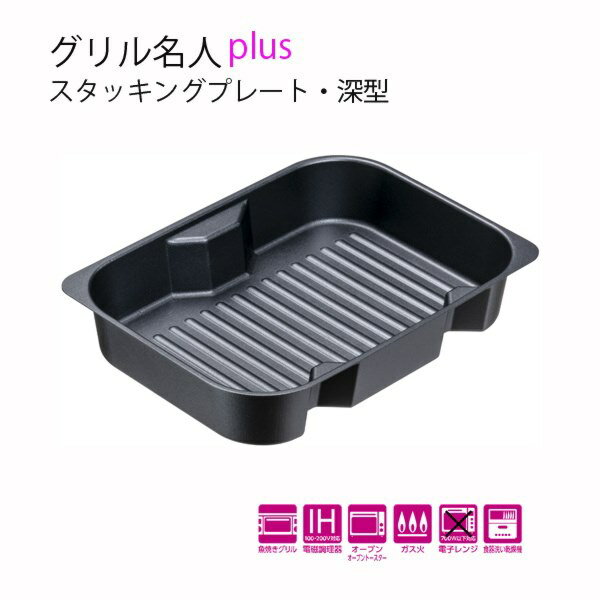 【グリル名人plus スタッキングプレート・深型】 内側突部分は邪魔者じゃない! 方向を変えて重ねると、下の空間を保持しながら重ねられる優れもの! バット代わりでも使え、調理前の一時保存や、 狭い料理スペースでも、コンパクトに重ねられて便利です。